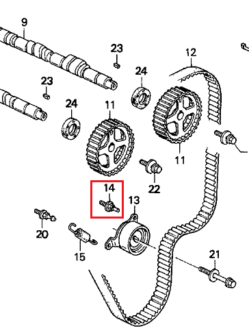 Genuine Honda Parts - Timing Belt Adjuster Base Bolt - Honda B Series