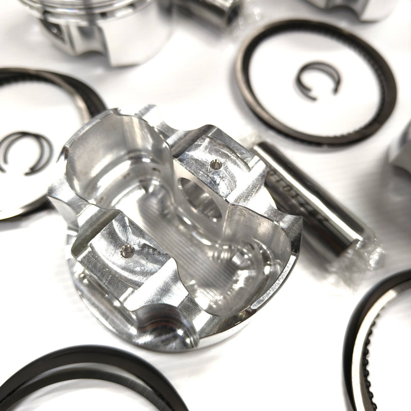 RZCrew's Custom-Made Forged Pistons are engineered for high performance applications, from hot street to competition. To ensure our pistons can take the serious abuse of high compression, extreme boost levels and heavy nitrous usage, while remaining reliable, we use 2618 aluminium alloy for its higher tensile strength.